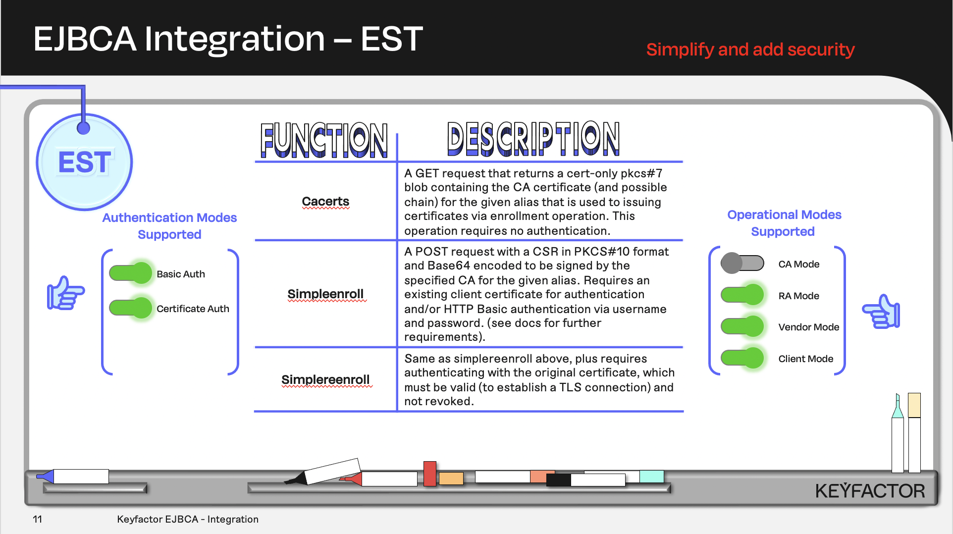 Certificate and CA operations available using Enrollment over Secure Transport (EST)