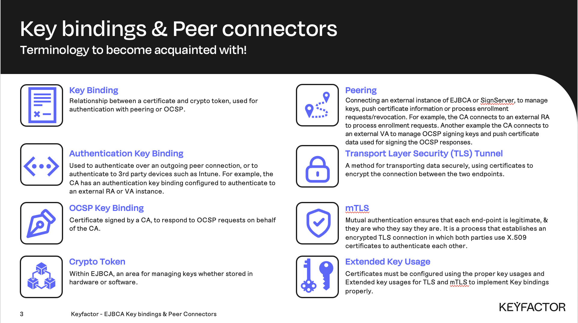 A peer connector is used to securely communicate with another instance of EJBCA or SignServer. Couple of items to keep in mind when performing this lab: