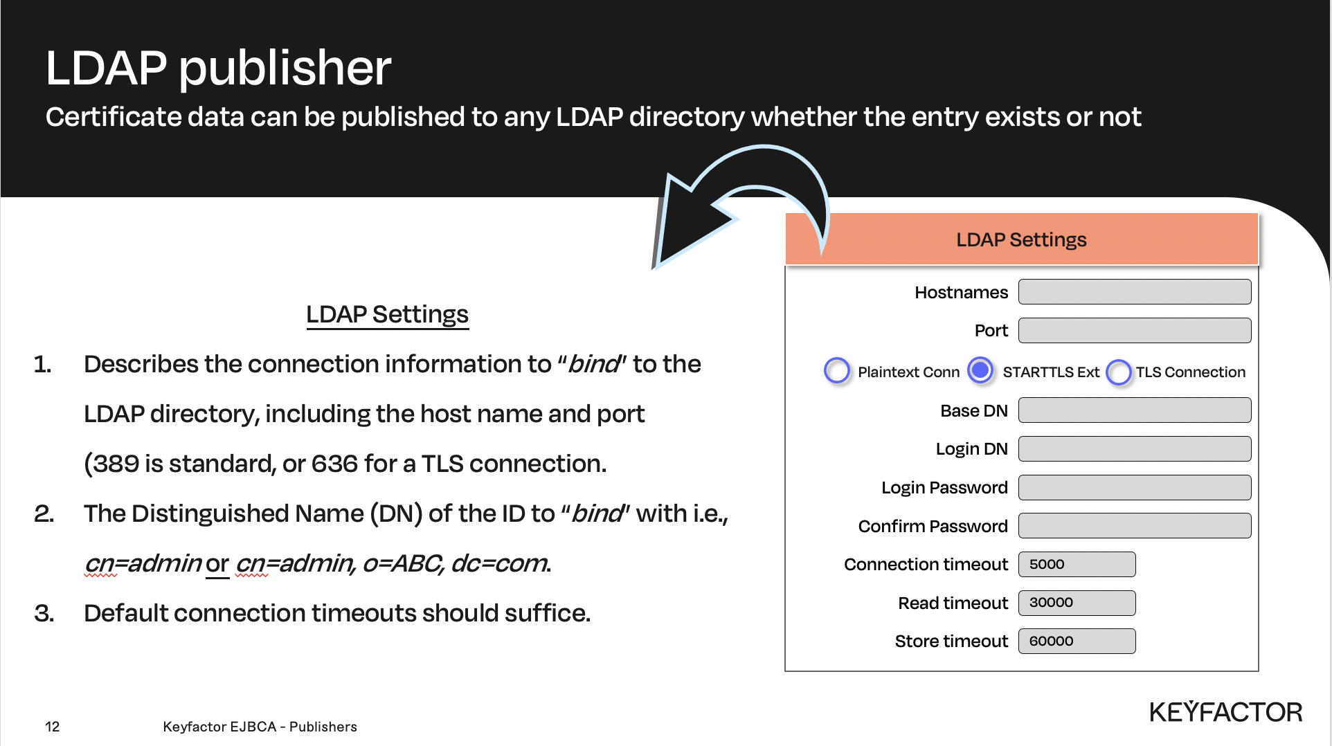 Overview: This part of the lab configures an LDAP publisher. If you wish to publish to an LDAP directory or Active directory instance (separate publisher), these are the types of information that would be required to setting up the publisher.