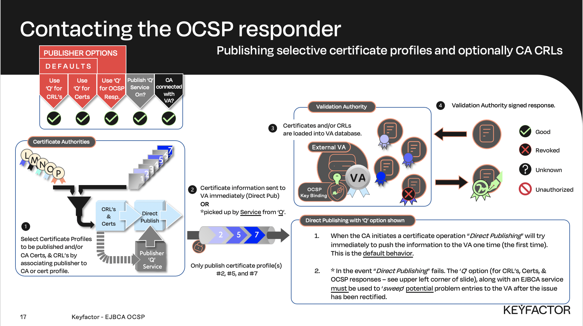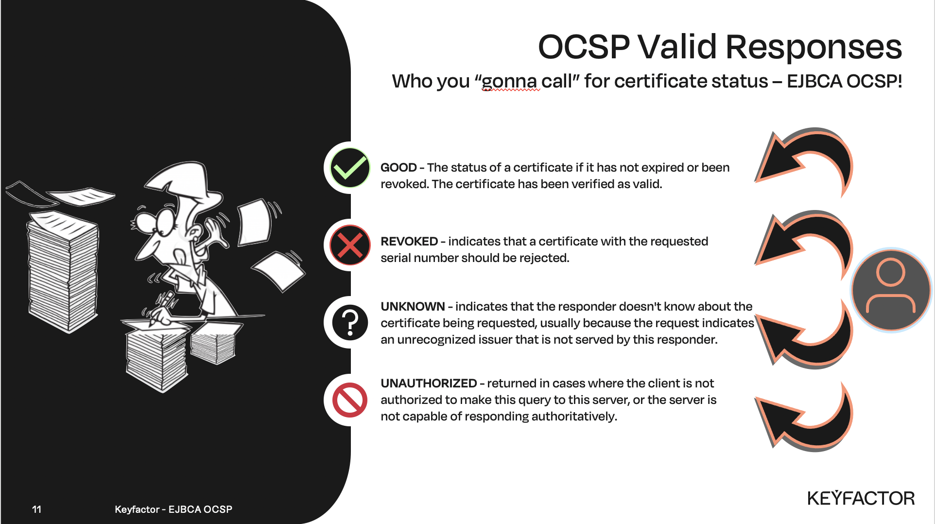 When client applications need the status of a certificate they will contact the VA and 1 of 4 responses can be returned