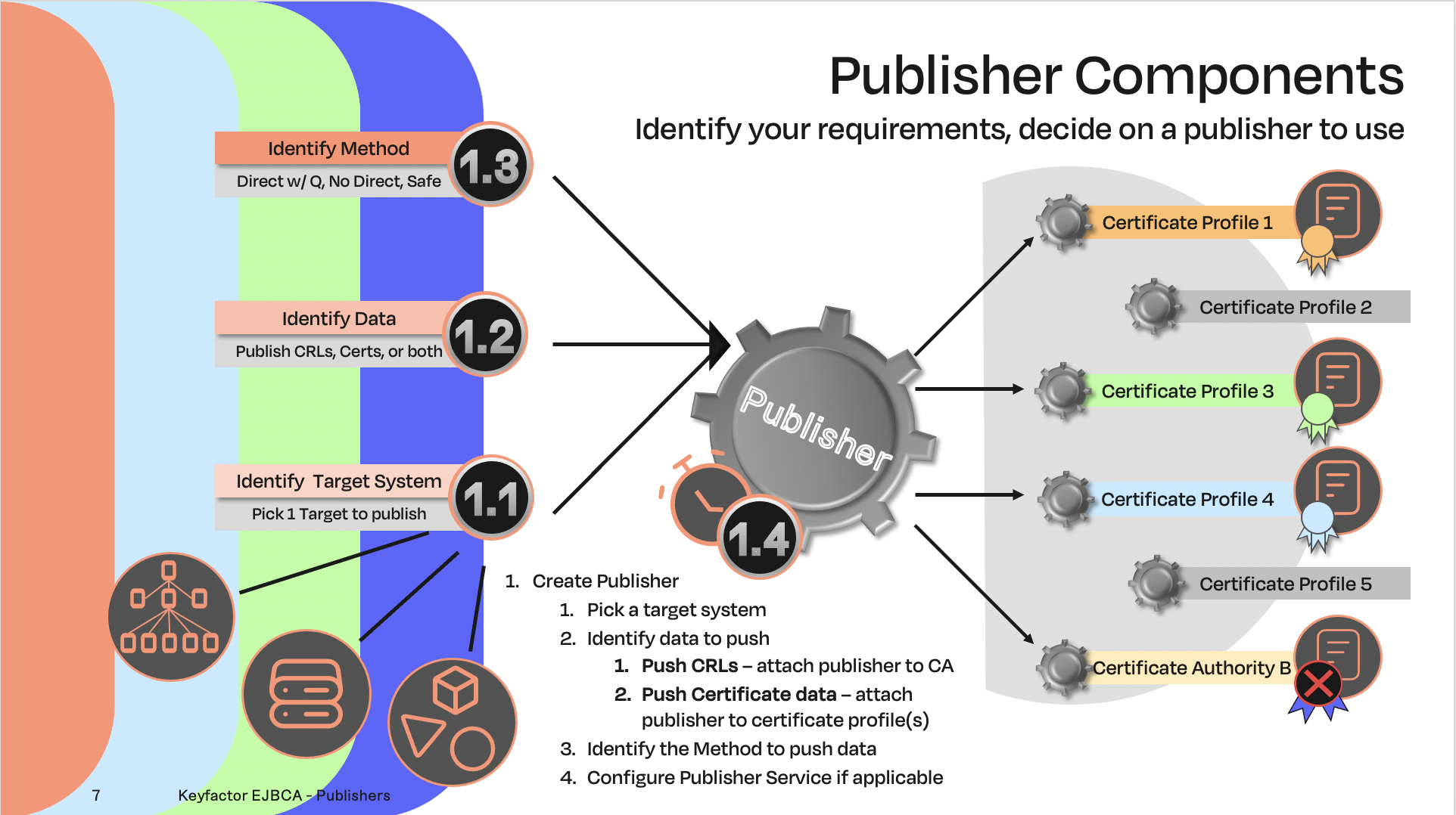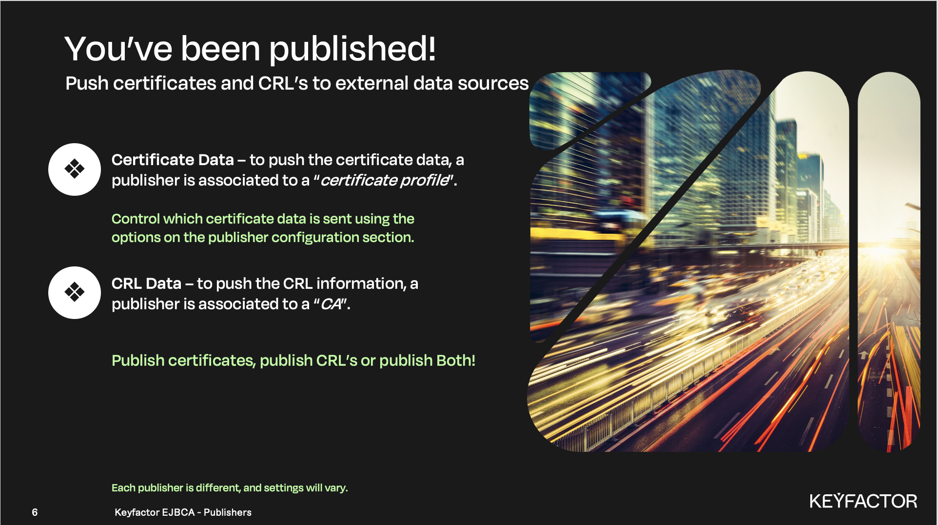 Overview: EJBCA Publishers is a very powerful tool, that allows you to push two types of data to external sources: